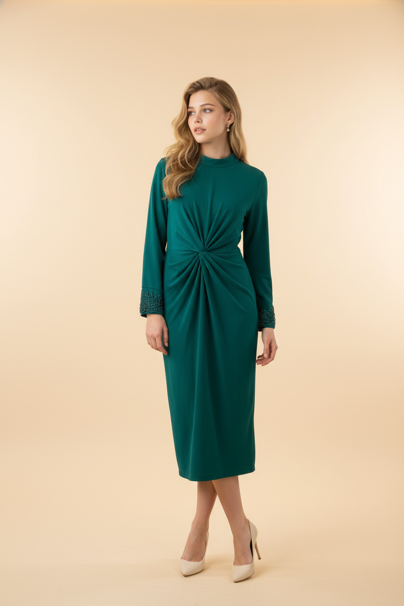 💚 Vestido verde con nudo en la cintura